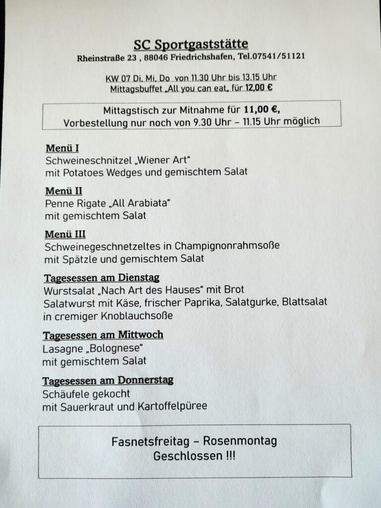 Mittagstisch und Angebote